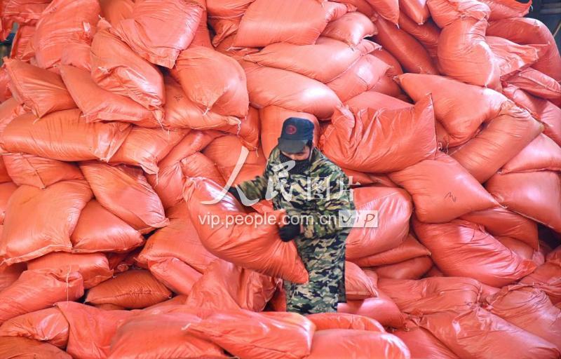 2月28日,工人在山東省淄博市沂源縣悅莊工業園一化肥生產企業車間搬運產品。