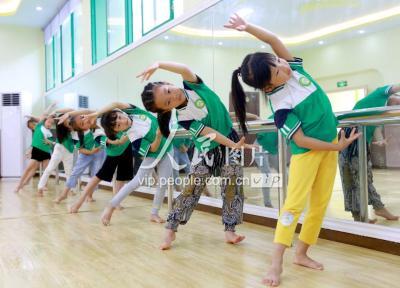 2019年6月21日,四川省華鎣市古橋街道幼兒園的孩子們在老師的指導下學習舞蹈。
