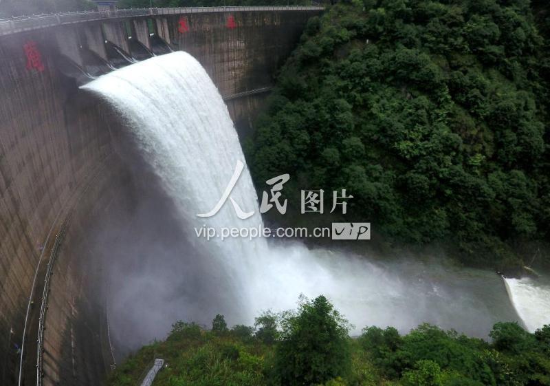 2019年7月5日,浙江省武義縣內(nèi)庵水庫溢洪,滾滾水流從溢洪道傾瀉而下,成了一道壯觀的風(fēng)景。