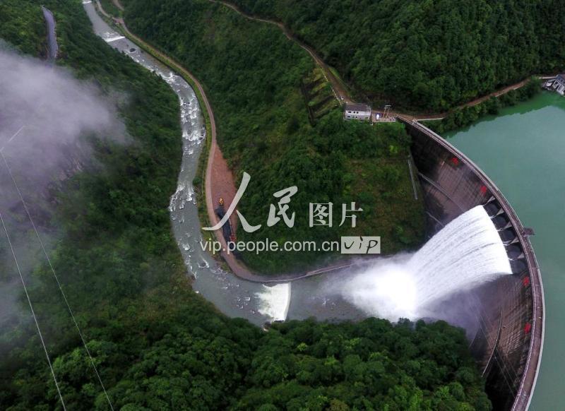 2019年7月5日,浙江省武義縣內庵水庫溢洪,滾滾水流從溢洪道傾瀉而下,成了一道壯觀的風景。