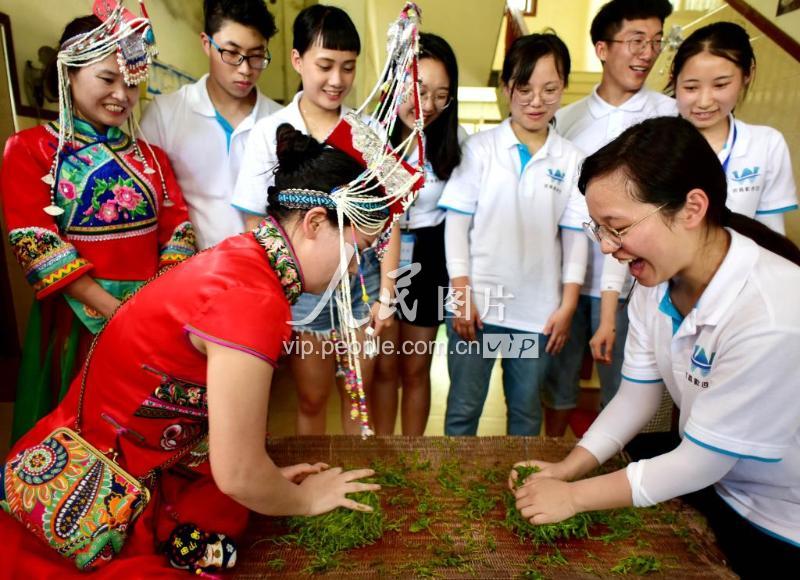 2019年7月24日,港臺學子在浙江省武義縣柳城畬族鎮江下村與當地畬民一起體驗手工捻茶。