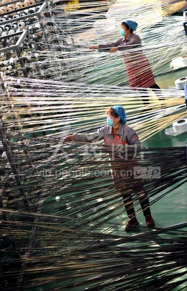 2020年3月2日,在山東省淄博市沂源縣魯村鎮(zhèn)一塑編企業(yè),工人在生產(chǎn)線上勞作。