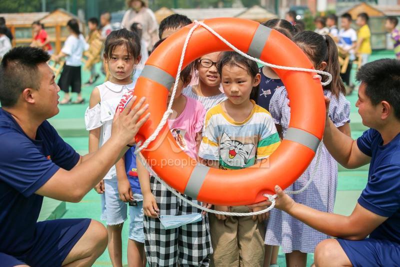2020年7月7日,江蘇如皋經濟技術開發區實驗幼兒園與北開消防站聯合開展“暑期消防安全課堂”主題活動,小朋友們在消防員的帶領下,通過學習消防知識、體驗消防裝備、參加滅火演練等。