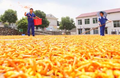 盛夏時節,湖南省衡陽市衡東縣三樟鎮的黃貢椒進入成熟采摘季,當地村民搶抓農時采摘、晾曬、加工黃貢椒,確保黃貢椒產業增產增收。黃貢椒,產于湖南省衡陽市衡東縣三樟鎮,2018年獲得國家地理標志產品證書。