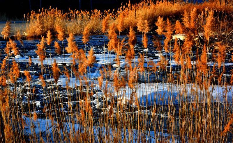 2021年1月16日,北京永定河門頭溝王平濕地段風光。