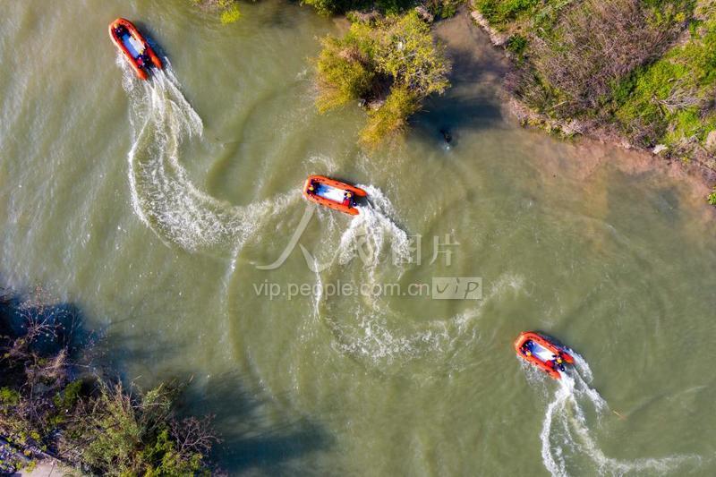 2021年3月23日,在浙江省溫嶺市新河鎮(zhèn)的消防水域訓(xùn)練基地,消防救援人員正在進(jìn)行“8”字環(huán)繞的橡皮艇操作技能。