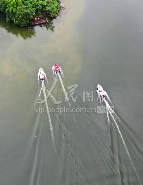2021年7月6日,四川省南充市蓬安縣大深溝水庫(kù),救援人員在演練水上救援。
