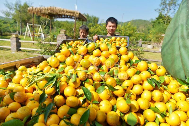 2022年12月11日,在廣西北海市合浦縣常樂鎮平洋村七方農民專業合作社沃柑產業示范點,一個個金燦燦、沉甸甸的果子掛滿枝頭,果農們正忙著采摘、挑選、裝筐、裝車,處處洋溢著豐收的景象。
