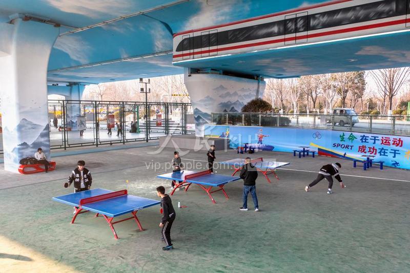 2023年2月19日,安徽省宿州市市民在新建成的銀河一路立交橋下北校場片區體育場健身。