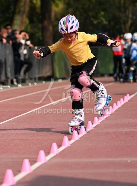 2月25日,參賽學生在進行輪滑速度過樁比賽。