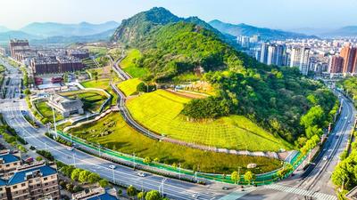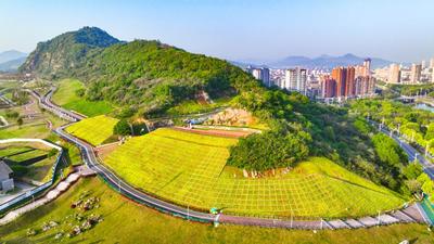 2023年4月17日,航拍安徽省蕪湖市繁昌區(qū)竹絲塔體育主題公園,生態(tài)修復(fù)后滿目皆綠,色彩斑斕,風(fēng)景如畫(huà)。