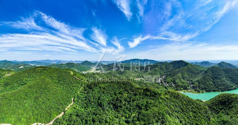 2023年6月28日,安徽省蕪湖市繁昌區(qū)平鋪鎮(zhèn)五華村附近,藍(lán)天白云映襯下的青山、碧水交相輝映,景色旖旎, 構(gòu)成一幅絢麗壯美的自然生態(tài)畫卷。