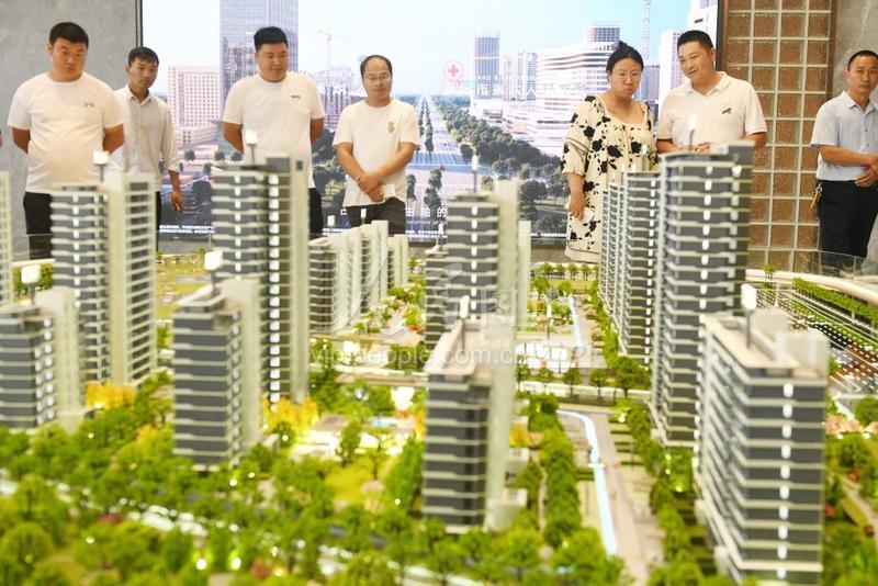 2023年7月15日,安徽省阜陽市一些市民在城區(qū)一家房地產(chǎn)營銷中心展廳觀看樓盤模型。 眼下正值夏季高溫季,針對市場剛需和改善性需求,阜陽市不少開發(fā)商結(jié)合季節(jié)特點和市場特點推出了一系列優(yōu)惠促銷政策和活動,吸引不少意向群眾前來光顧。