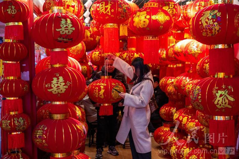 2023年12月26日,義烏國際商貿城,客商忙著選購喜慶飾品。