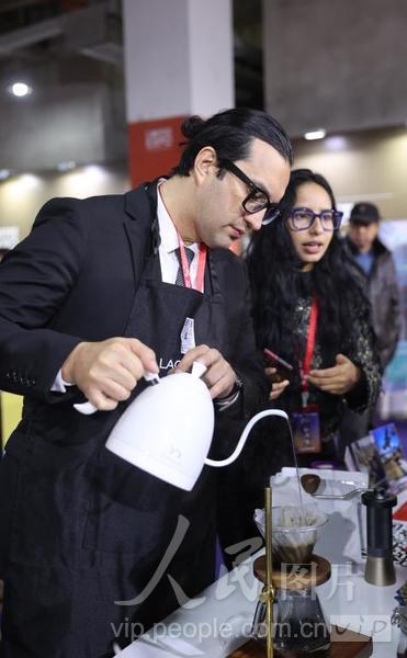 2024年1月6日,在中國(普洱)咖博會上,墨西哥咖啡師正在調(diào)制咖啡。