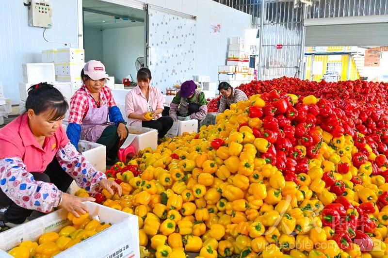 2024年1月13日,在廣西北海市合浦縣石康鎮東沖村的大棚彩椒基地,村民們忙著把紅色的、黃色的彩椒裝箱、轉運,收購商也早早來此等候裝車,現場一片繁忙景象。 近年來,合浦縣通過流轉土地,建設設施農業大棚示范基地,促進彩椒產業提質增效,同時采用“黨建+企業+合作社+農戶”合作模式,由引進企業統一規劃,發展現代農業,不僅促進村集體經濟增收,且常年為村民提供穩定就業崗位,讓村民們鼓起了“錢袋子”,走上了甜蜜致富路。