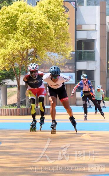 2024年5月21日,遼寧沈陽,輪滑愛好者在五里河公園玩輪滑健身,享受運動帶來的快樂。