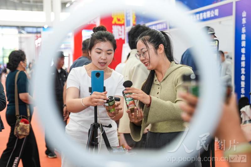 2024年5月26日,網絡主播在2024山東(樂陵)調味品博覽會現場選品直播推介。
