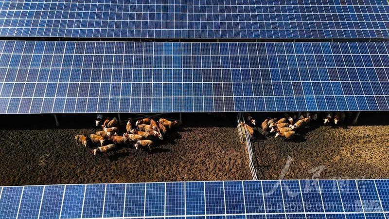 2024年8月14日,在山東省樂陵市鐵營鎮,一塊塊藍色的光伏板整齊排列在鹽堿地上,光伏板下養殖成群的牛、羊、鵝。 近年來,山東省樂陵市將綠色發展理念貫穿銜接鄉村振興集中推進區全過程,因地制宜在鹽堿地上建設“上發電、下種養”的農光互補、牧光互補等新能源產業,在節約土地資源的同時,為鄉村振興注入新動能。