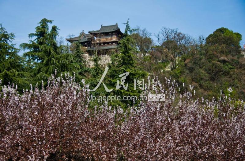 2016年3月24日,江蘇鎮江市,著名的北固樓在繁花環繞下格外美麗。近年來,鎮江市圍繞歷史名樓精心打造的人文景區再現滿眼風光。